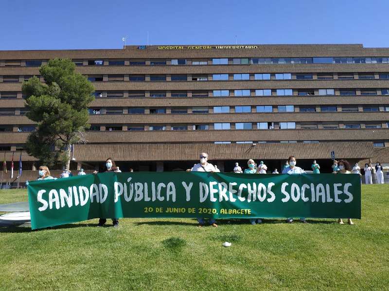 El pasado sábado, 20 de junio, la ciudadanía de Albacete ha vuelto a expresar su agradecimiento a las y los trabajadores de todos los centros sanitarios, materializándolo simbólicamente en un gran abrazo con más de 800 personas y un aplauso de 15 minutos en el Hospital General Universitario, tal como se ha hecho en tantos otros centros a lo largo de todo el estado.