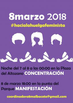 A las 18 h de la tarde nos uniremos a la movilización que ha convocado la Coordinadora 8M de Albacete, desde la punta del parque al Altozano.