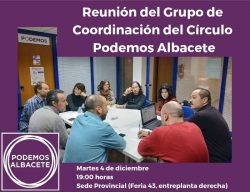 La asamblea tendrá lugar el próximo viernes, día 7 de diciembre, a las 19:30h, en la Sede Provincial (Feria 43, entreplanta derecha). Dicha asamblea es abierta a toda la ciudadanía de Albacete y el orden del día incluirá los siguientes puntos: – Creación de un grupo de trabajo para organizar mesas de encuestas (5 minutos). […]